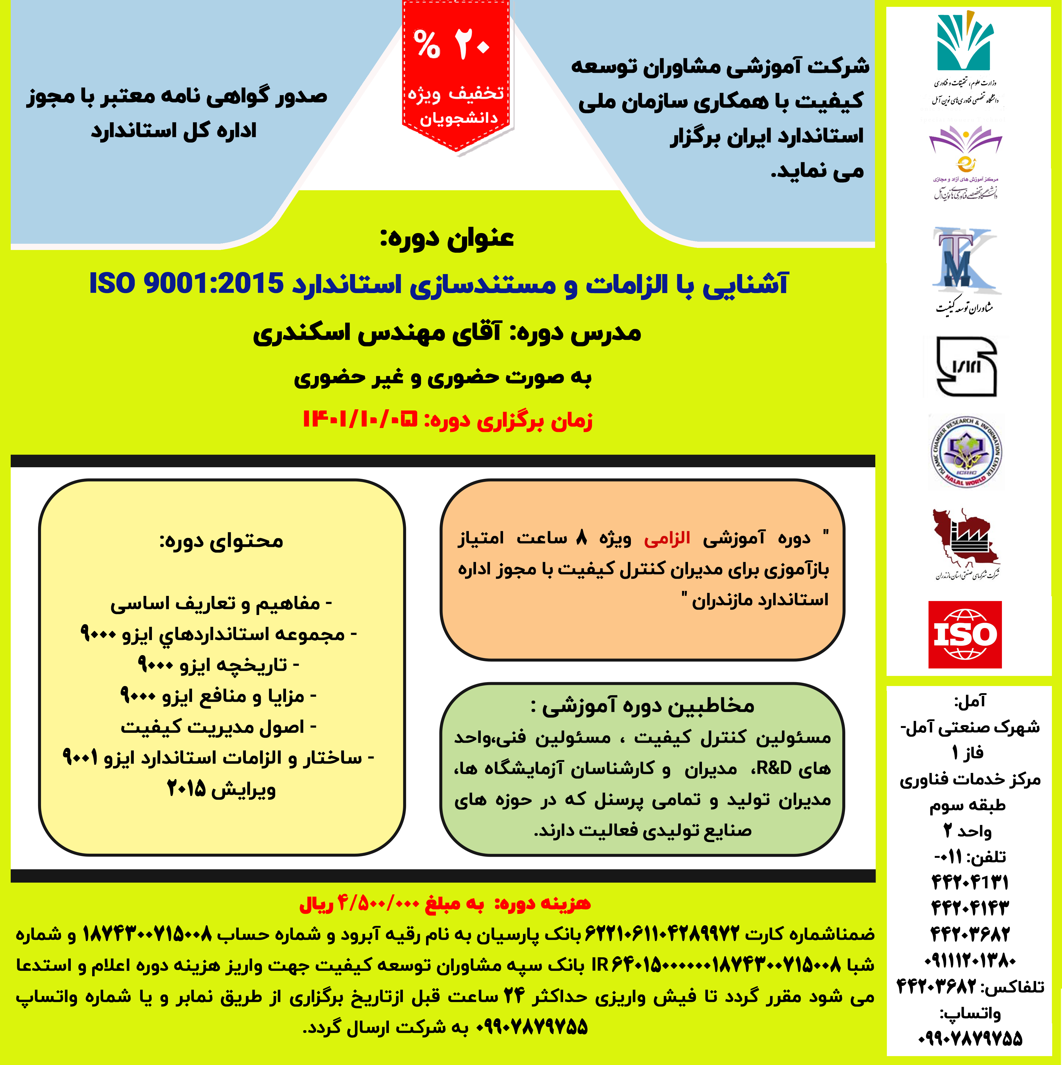 برگزاری دوره آشنایی با الزامات و مستندسازی استاندارد
